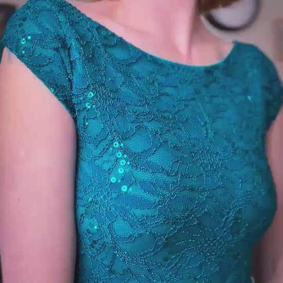 Ein zart schimmerndes Spitzentop, elegant und vielseitig. Das weiche Futter sorgt für Komfort, während der offene Rücken für Raffinesse sorgt. Perfekt zu Röcken oder Hosen zum Tanzen oder für abendliche Anlässe.