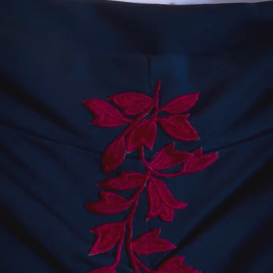A striking tango skirt designed to enhance movement and elegance. The front slit adds freedom and allure, while the draped back detail with red accents creates a unique silhouette. Made without lining for lightness and comfort, it flows beautifully with every step on and off the dance floor.
