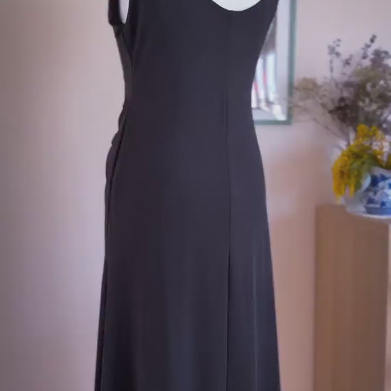 Black Tango Dress with Drapery and Shimmer Embroidery (L/XL)
