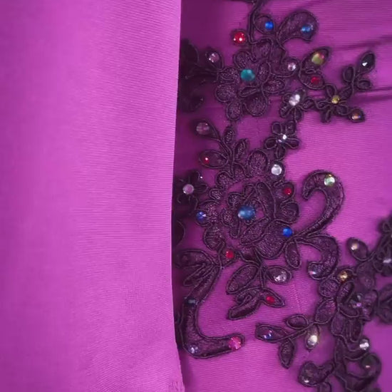- Embroidered applique with sparkling accents