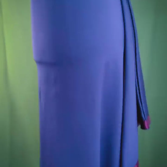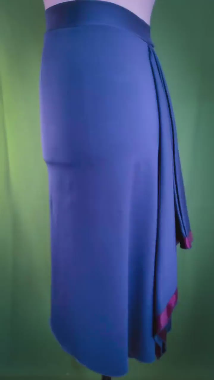 Elegant dark blue tango skirt with a striking accent tail at the back, delicately finished with a ribbon detail. The design creates fluid movement and a refined silhouette, perfect for both dance and evening wear. One of a kind