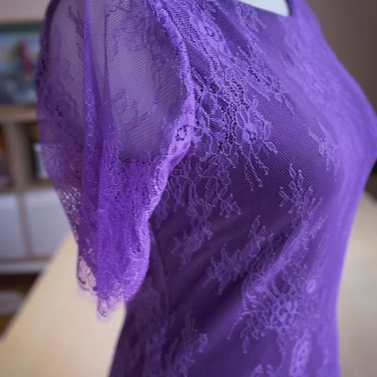 This sophisticated tango top is crafted from delicate French Chantilly lace, lined with soft jersey for a luxurious feel against the skin. The sheer lace sleeves add a touch of sensuality and elegance, making it the perfect choice for both dancing and special occasions.