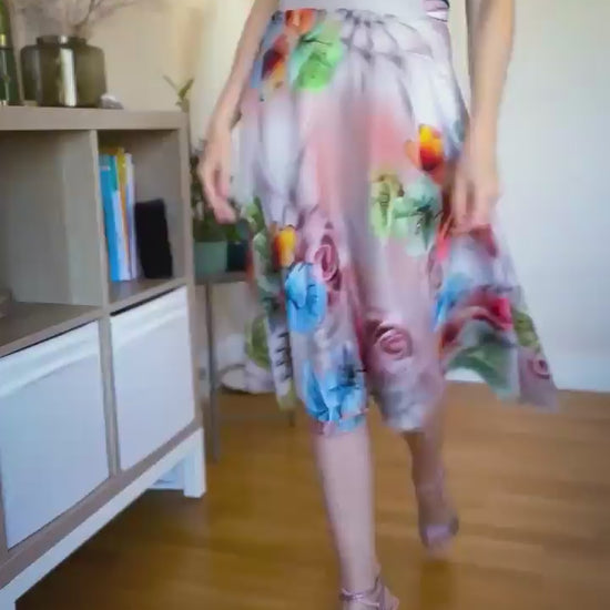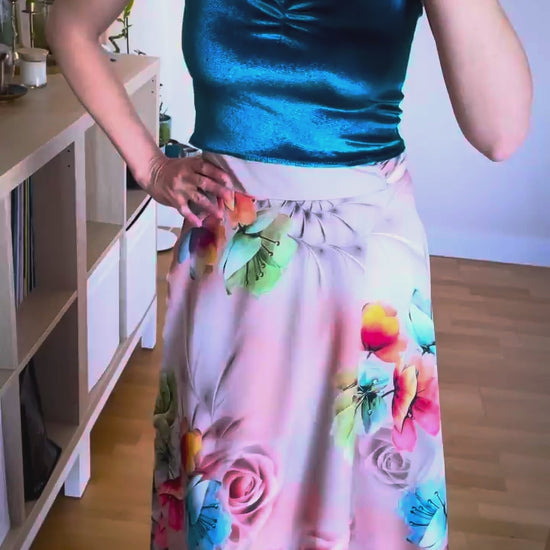 For your tango and special occasions, this elegant tango wrap skirt combines freedom of movement with timeless femininity. Long ties allow you to create a beautiful bow either in the front or at the back, while a small loop keeps the belt securely in place at the waist. The soft, flowing viscose moves gracefully with every step and is perfect for sensitive skin.