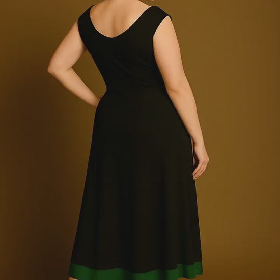 Exclusive black and green double-layered jersey tango dress with waist embroidery