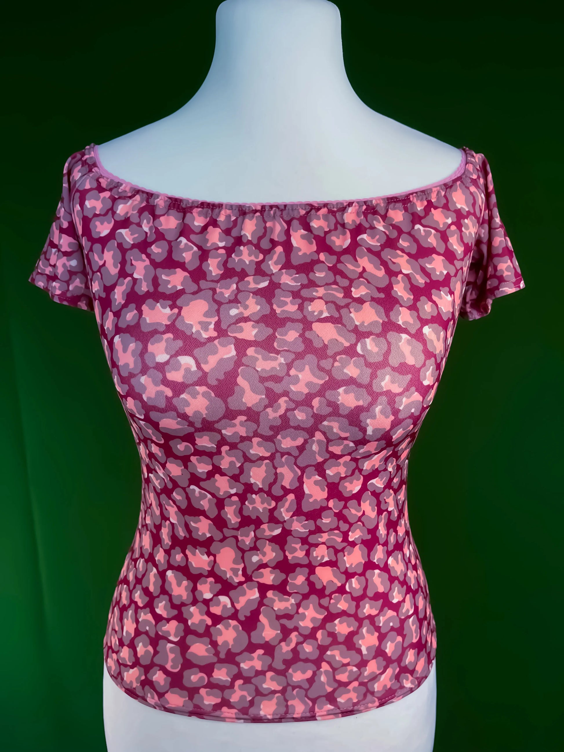 The off-shoulder design and fitted. Silhouette create a feminine and elegant look, while the silky jersey with subtle pattern ensures comfort and freedom of movement. A refined choice for tango evenings.
