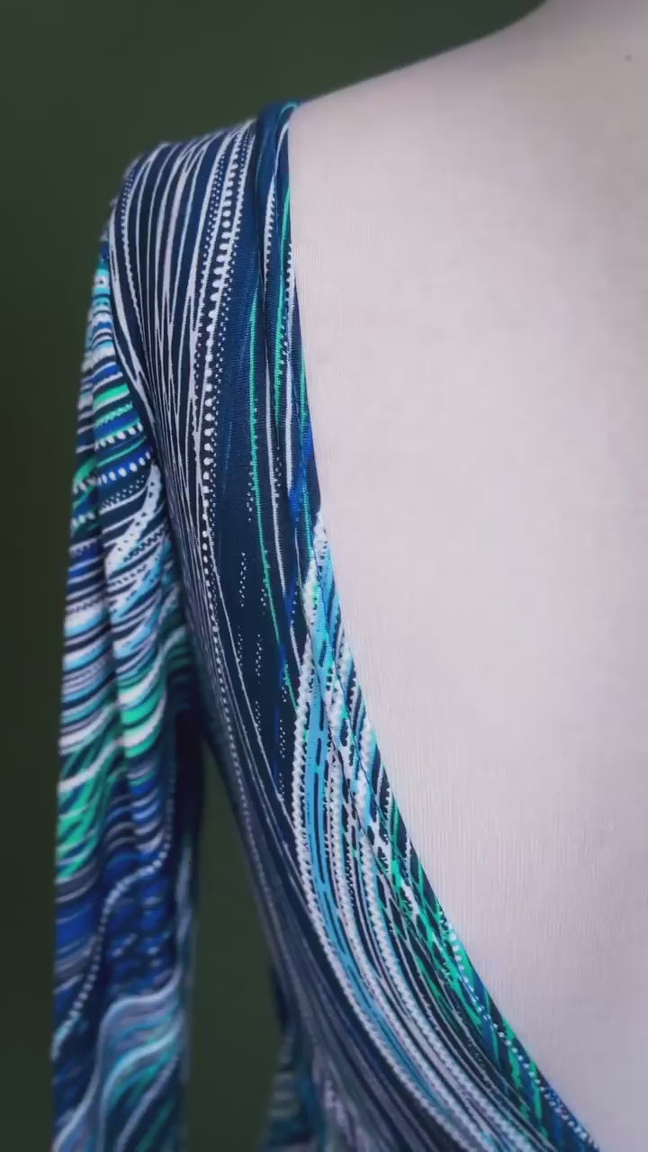 An elegant and striking knit dress designed to highlight movement and temininity. The bodice is delicately lined for comfort, while the fitted silhouette flows into a graceful midi length. At the back, a deep V-shaped neckline with a chic knot detail creates a dramatic focal point, complemented by a back slit that ensures ease in motion. A unique piece that balances sophistication with allure — perfect for tango, evening occasions, or special events. Only one available.