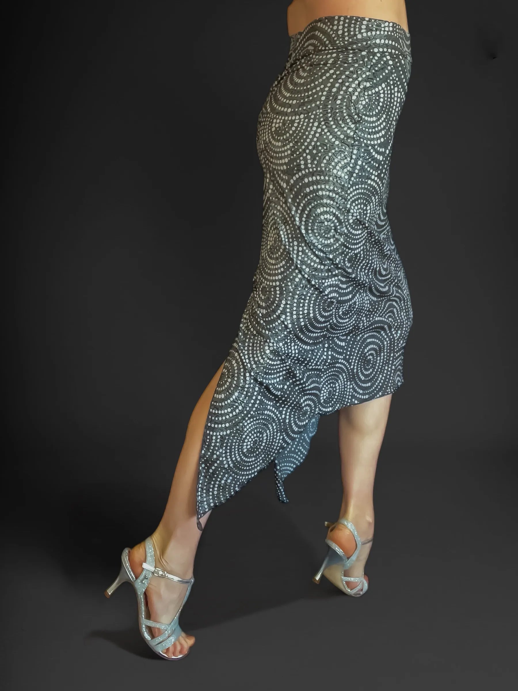 Elegant skirt crafted from silky stretch jersey with a subtle shimmer. The high-low hemline features a graceful fishtail at the back, adding movement with every step. Lightweight, wrinkle-free, and comfortable - perfect for dancing.