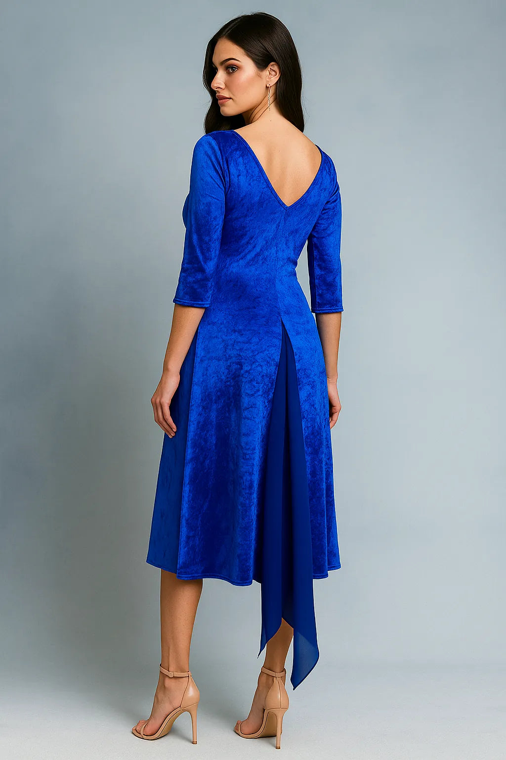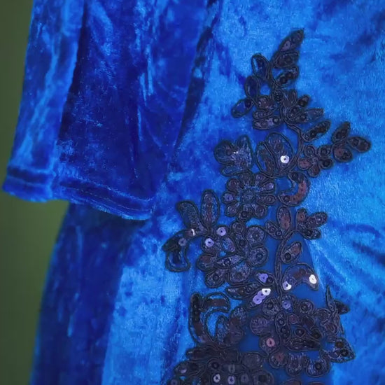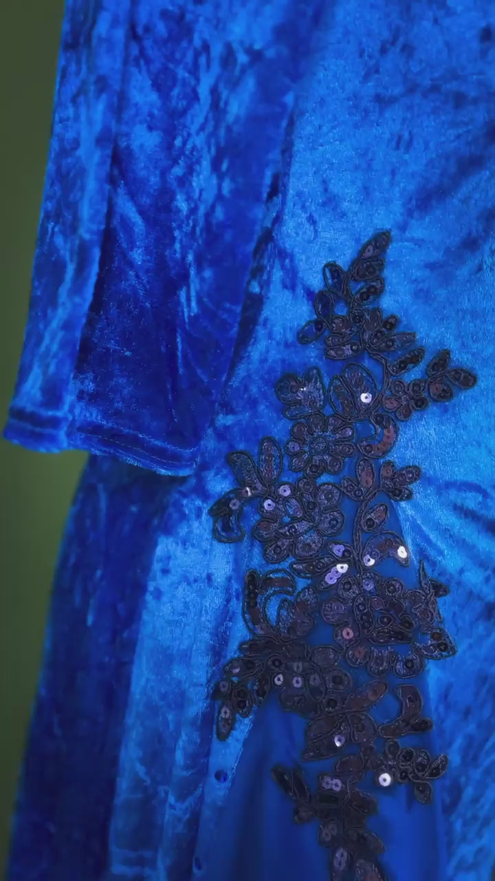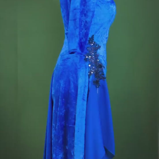 Luxurious velvet tango dress with chiffon drapes and embroidery