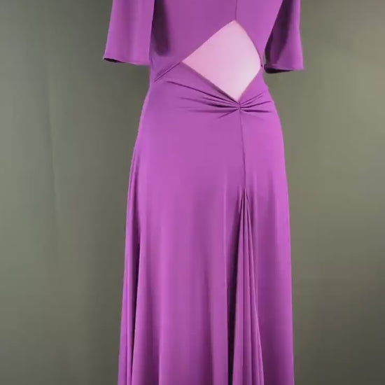 - Shaped open back with draping (bra-friendly, strap remains covered)