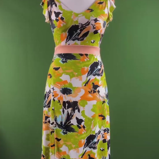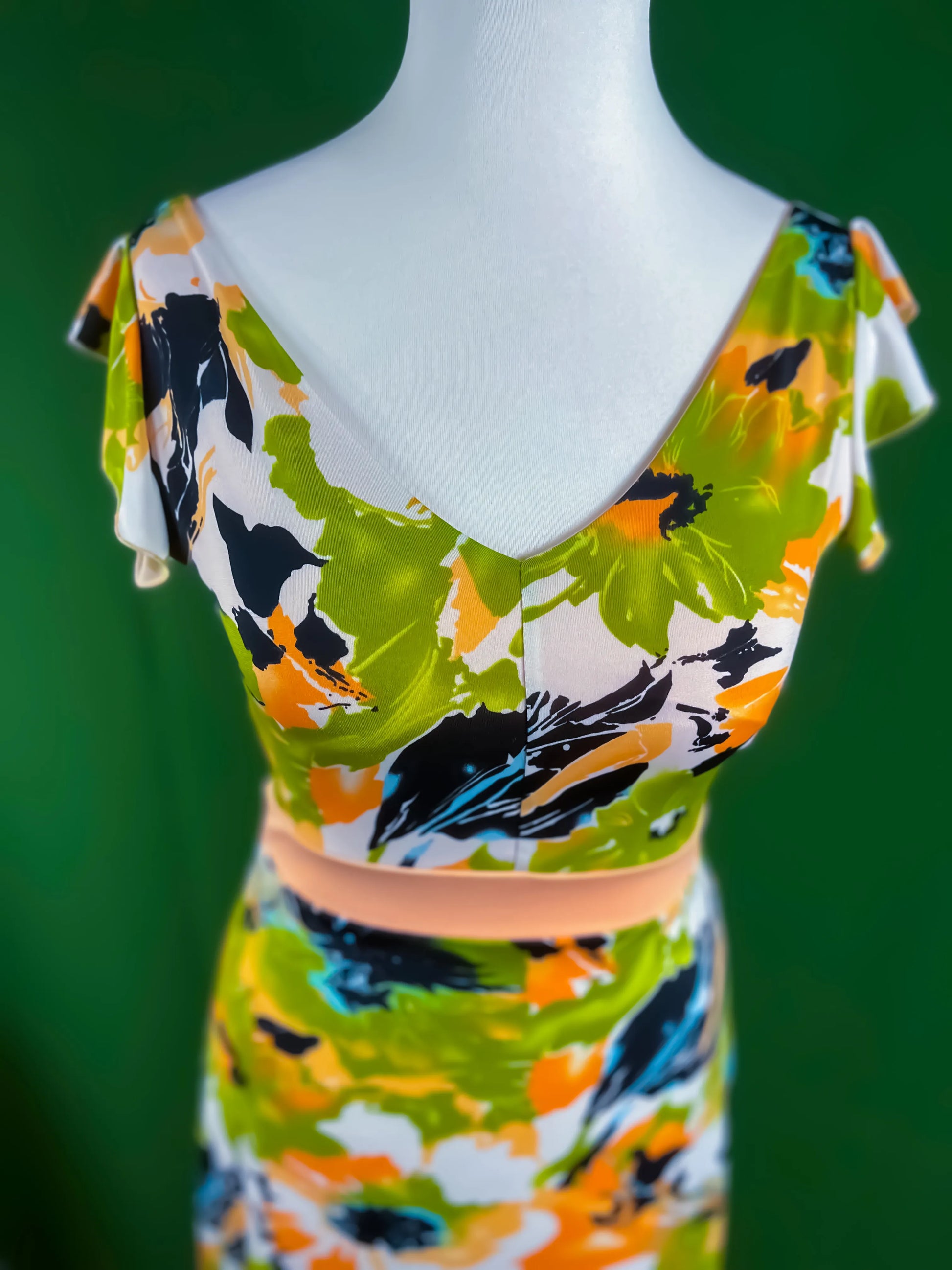 A feminine tango dress designed to highlight elegance and movement. The fitted bodice with flutter sleeves and a belt accentuates the waist, while the wide flowing skirt with a back tail adds lightness and grace. The front slit gives freedom of movement, making this dress perfect for dancing. Fully lined for comfort and flawless fit.