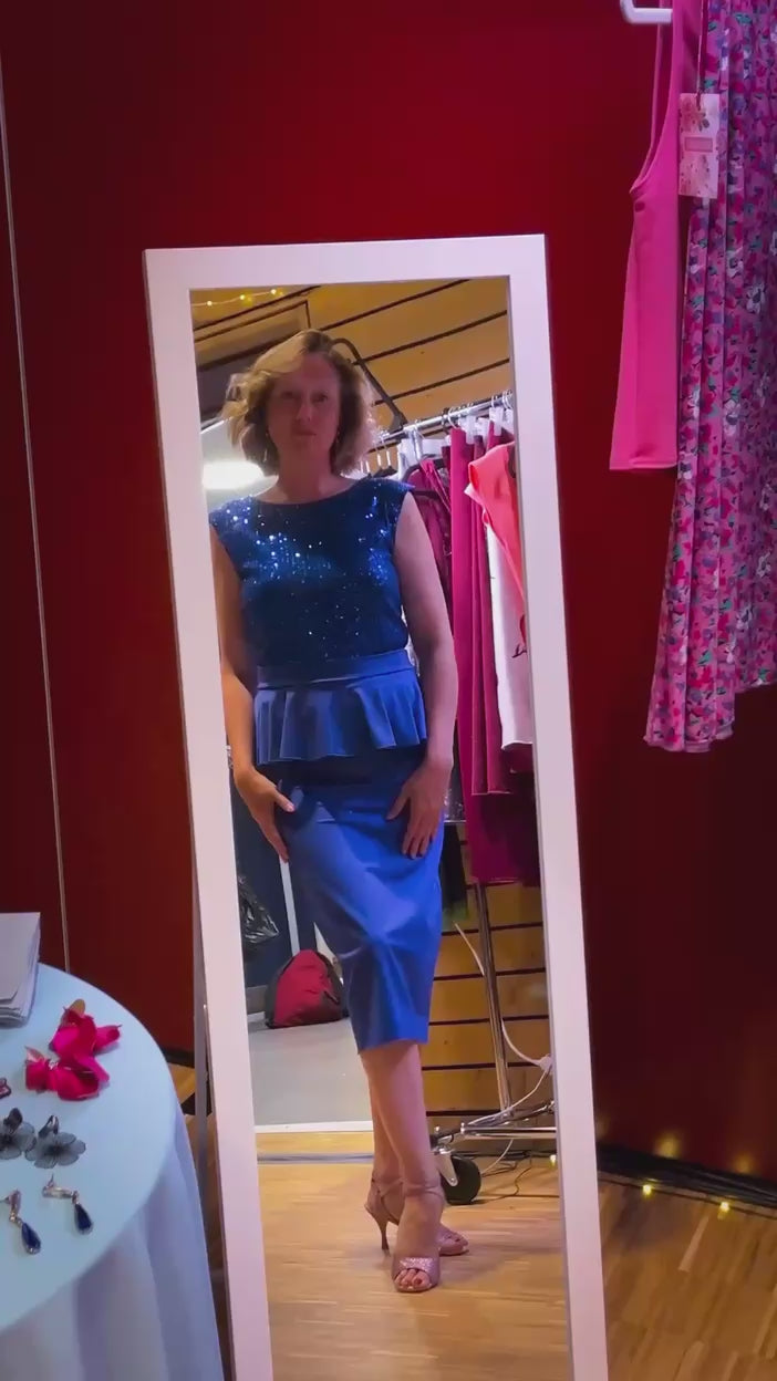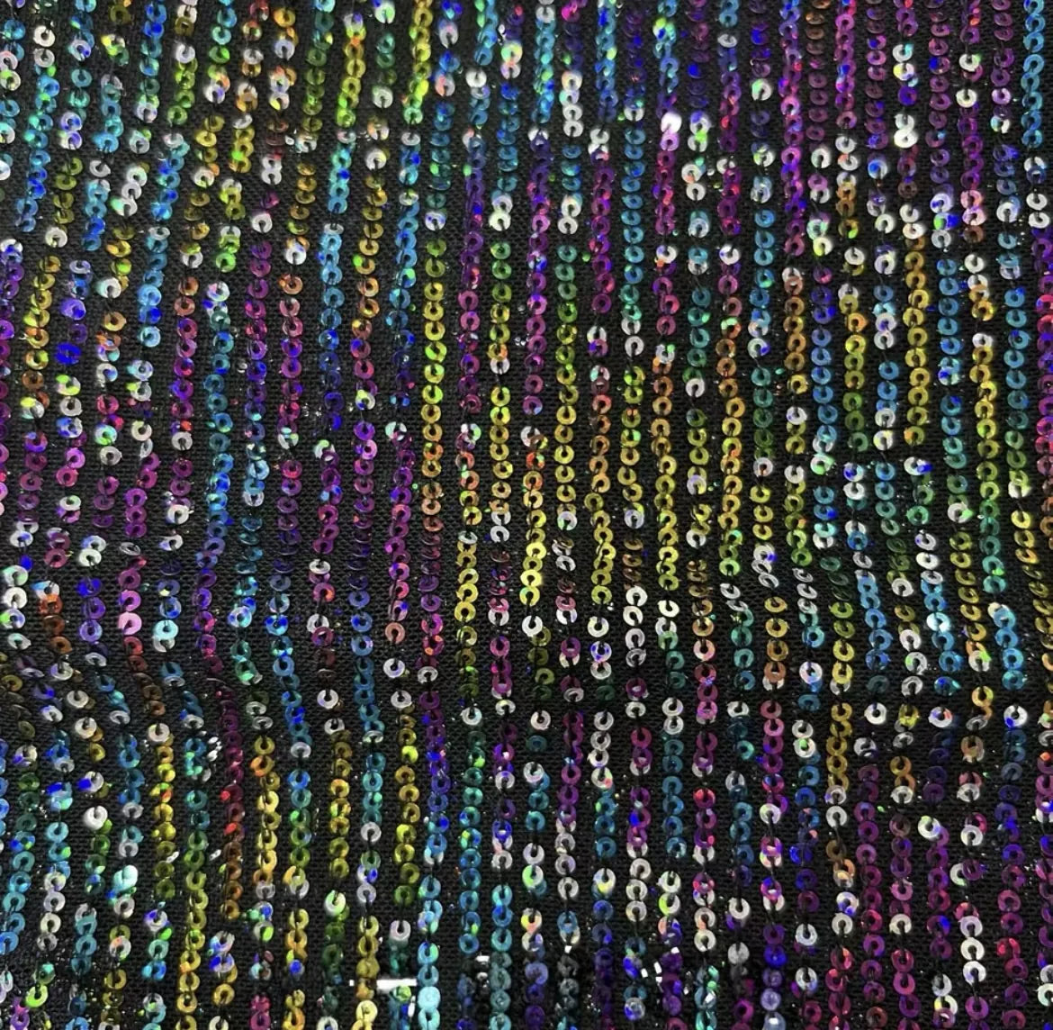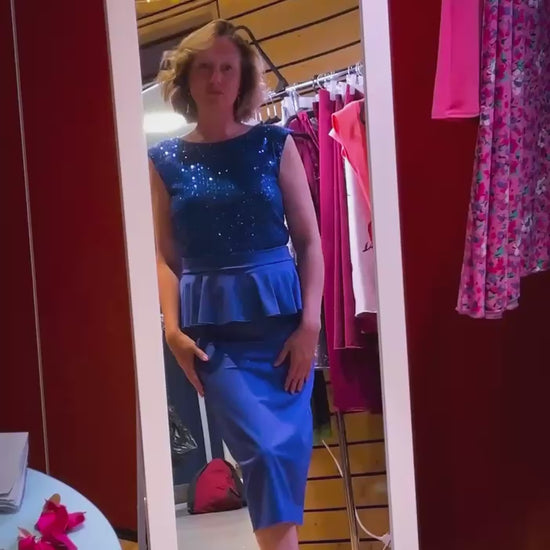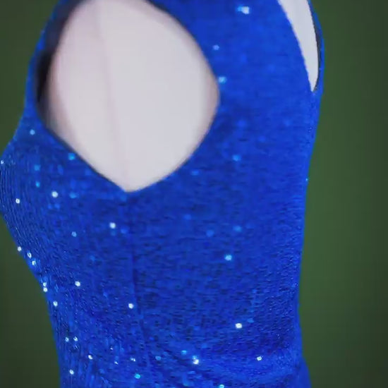 Exclusive shimmering top crafted from sequin mesh with lining. Features closed shoulders and underarm coverage for a neat look. The semi-open back cut ensures comfort and gracefully hides bra straps.