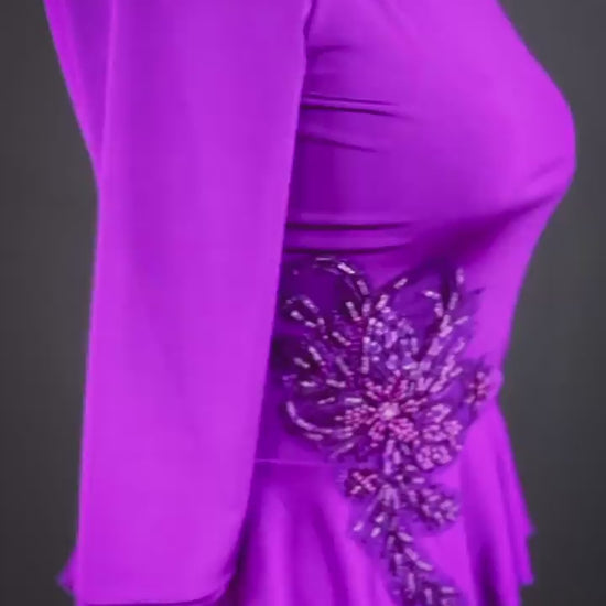 Exclusive top made of silky jersey with lining. Decorated with shimmering embroidery at the waist. The feminine basque not only adds elegance but also gently masks the tummy. A perfect piece for both dancing and special occasions.