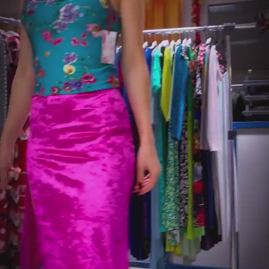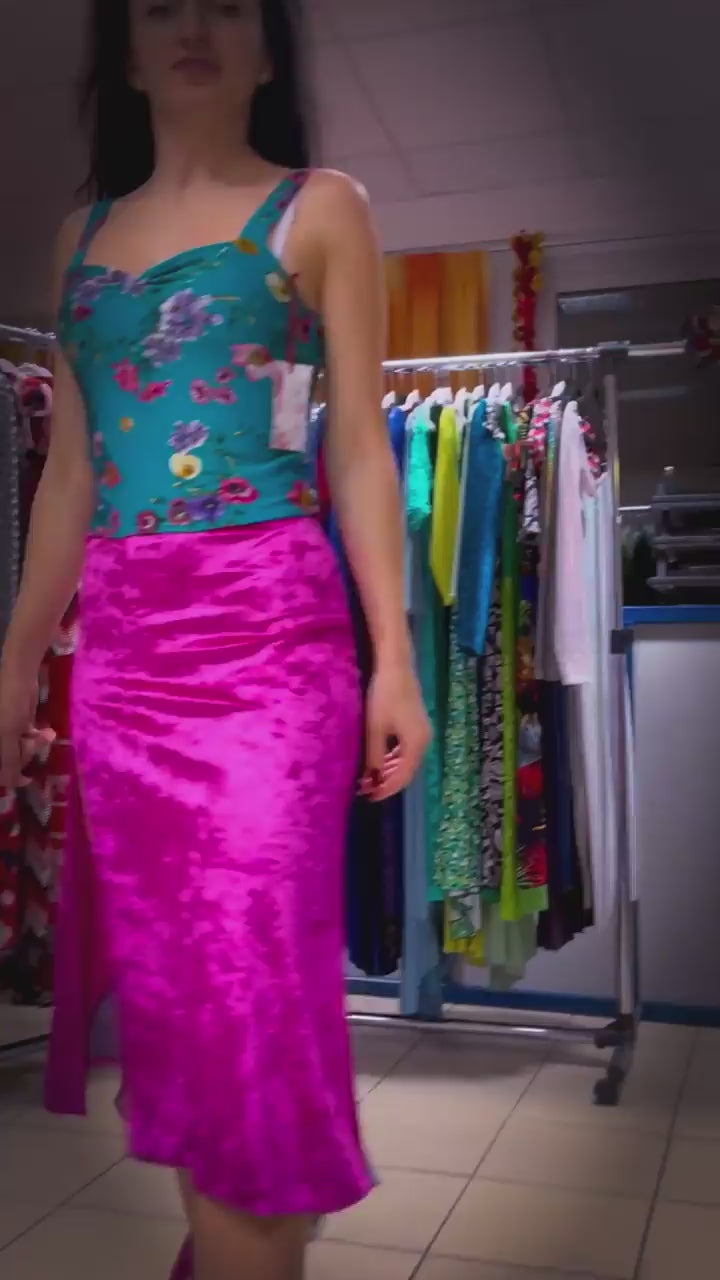 Velvet tango skirt in fuchsia - one of a kind. Bold and dramatic, this striking tango skirt is crafted from luxurious fuchsia velvet. The high front slit highlights the leg with every step, while the flowing two-layer chiffon tail at the back adds movement and elegance. Designed to turn heads both on and off the dance floor.