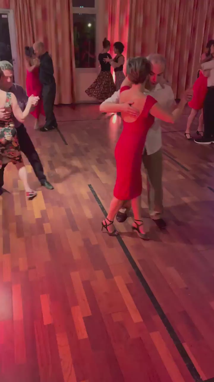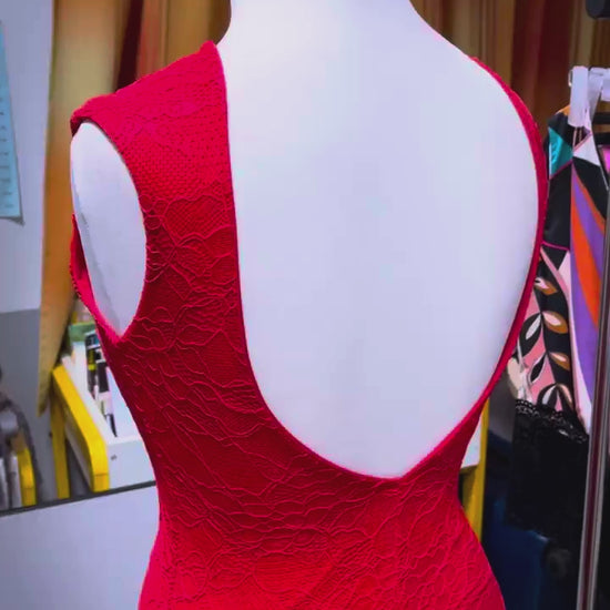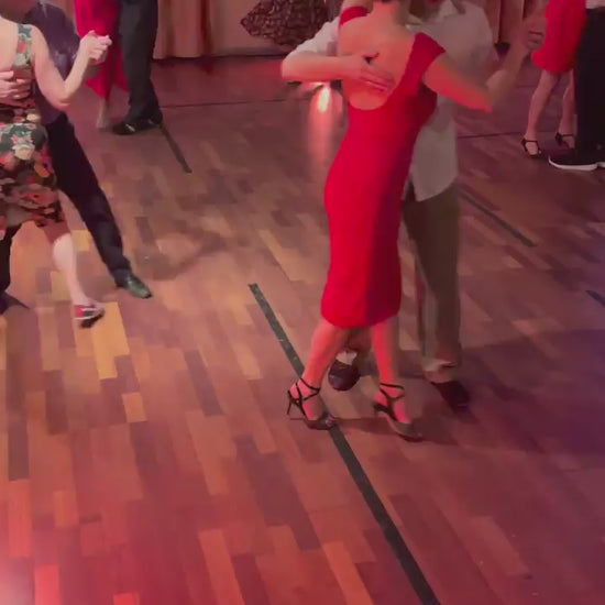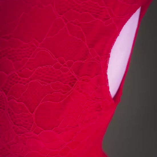 For your tango nights and special occasions, this stunning red lace dress embraces the body with its soft, stretchy lining. The open back and a side slit ensure both sensuality and freedom of movement, making it perfect for dancing while highlighting your silhouette.