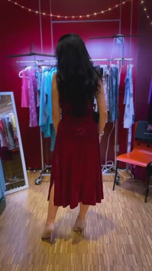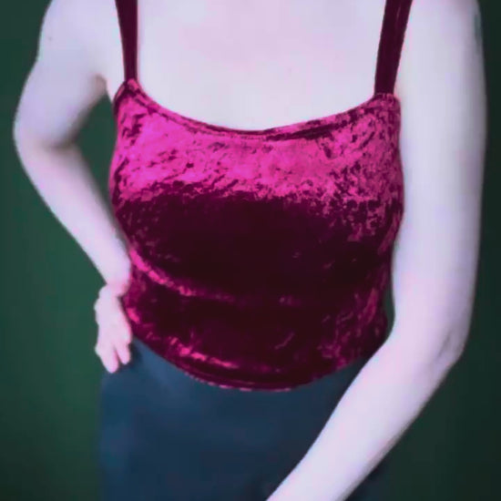 Velvet tango top with wide straps. This versatile piece features optional soft gathers on the bust that highlight the neckline and create an elegant silhouette, or can be worn without. Made from soft stretch velvet, the top gently hugs the body, making it equally suitable for tango evenings or everyday wear.