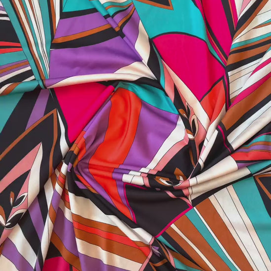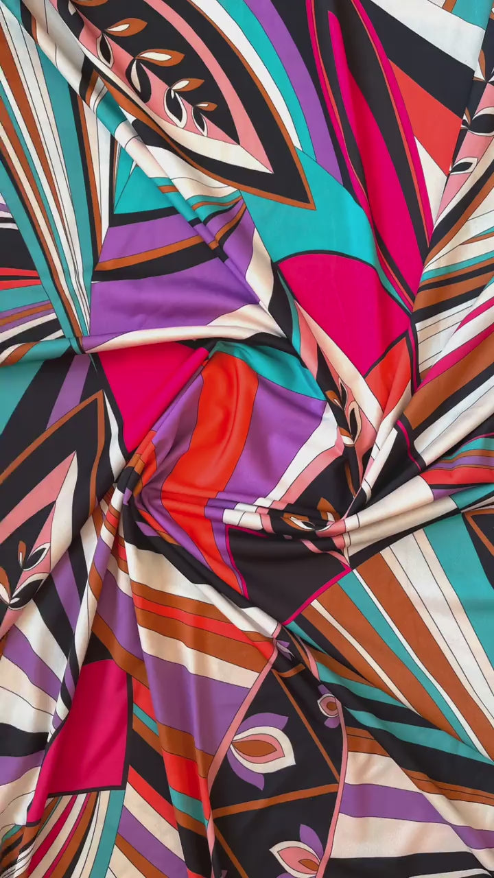 A vibrant top crafted from silky stretch jersey with a soft lining. The bold print makes it easy to pair with skirts of different colors, creating versatile and striking looks. The design features covered shoulders and underarms for comfort, while the semi-open back neckline elegantly conceals bra straps. Limited Edition