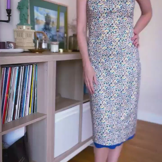 This tango set is designed to highlight your elegance and confidence. The skirt and top are sold together. Made from soft, breathable viscose with a bright contrasting blue knit lining.