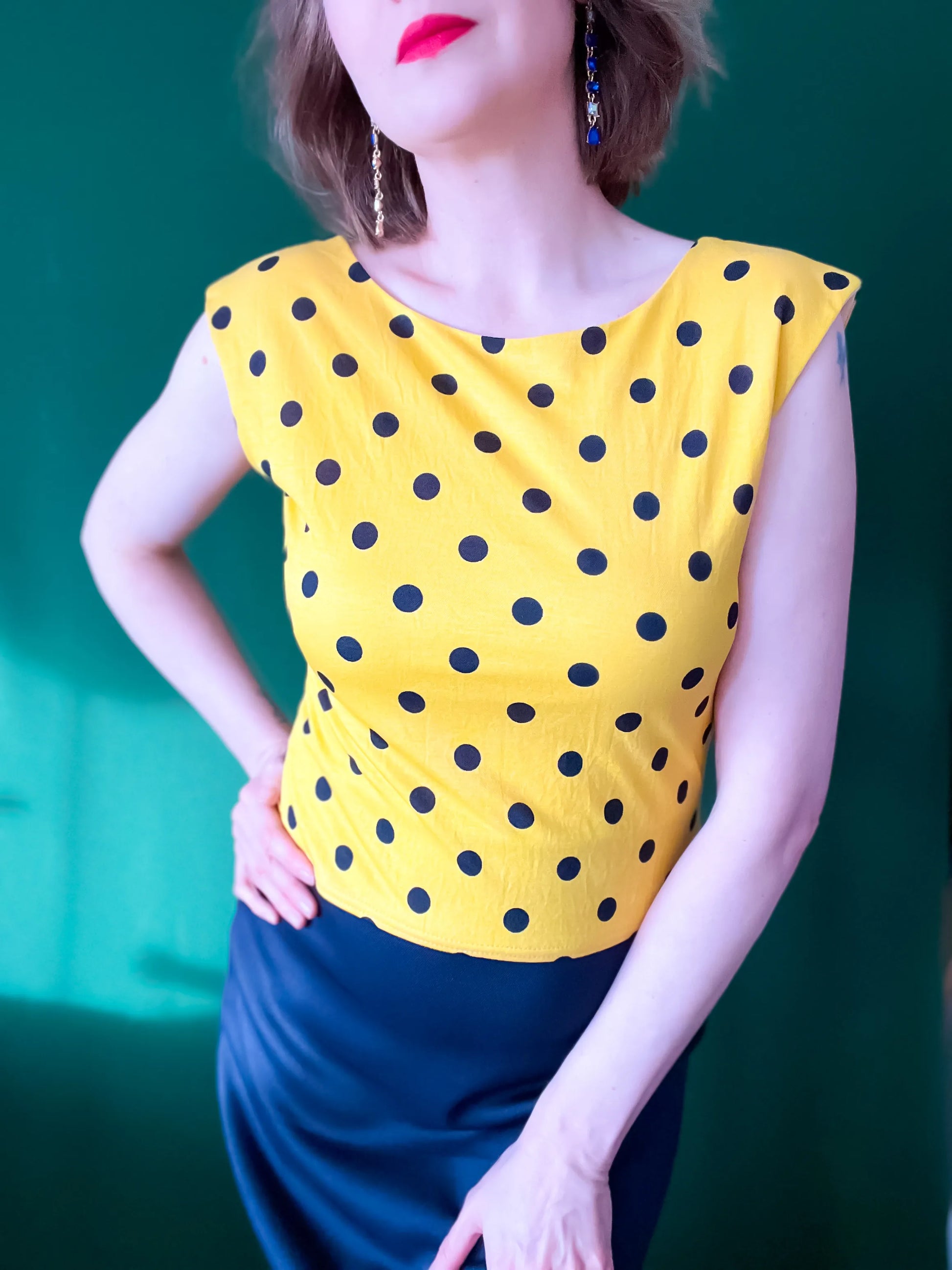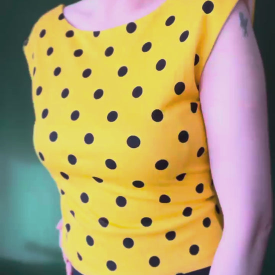 Yellow polka dot tango top in crash viscose